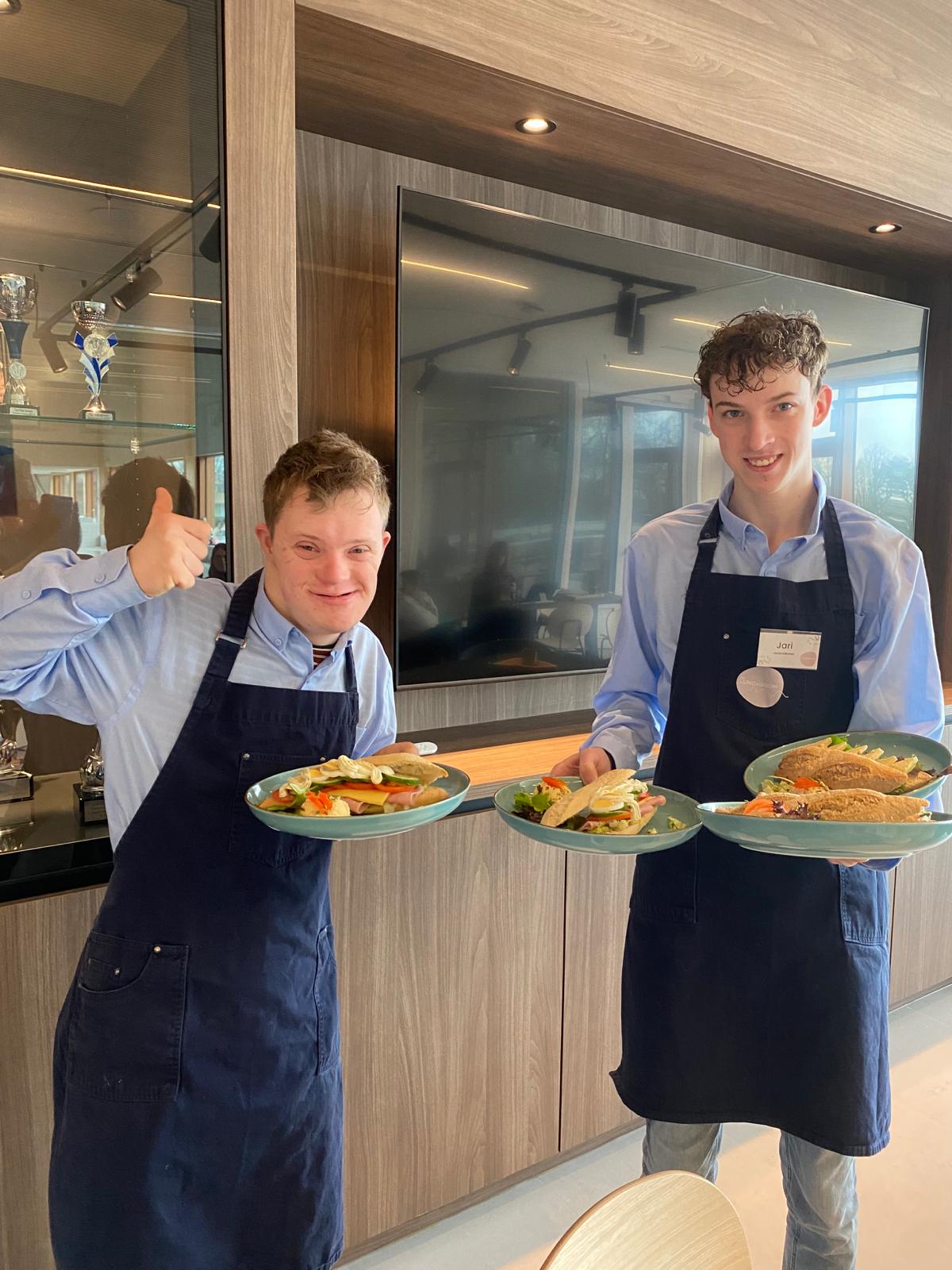 Ook begeleiden wij stagiaires vanuit VSO scholen en jongeren met afstand tot de arbeidsmarkt. Zo hebben we voor ieder wat wils. Door in een veilige omgeving te werken, kunnen de deelnemers zich ontplooien en ontdekken wat ze nou echt leuk vinden om te doen. De werkzaamheden van de medewerkers zijn divers, afhankelijk van de interesses. Zij werken in de bediening, keuken en facilitair.
