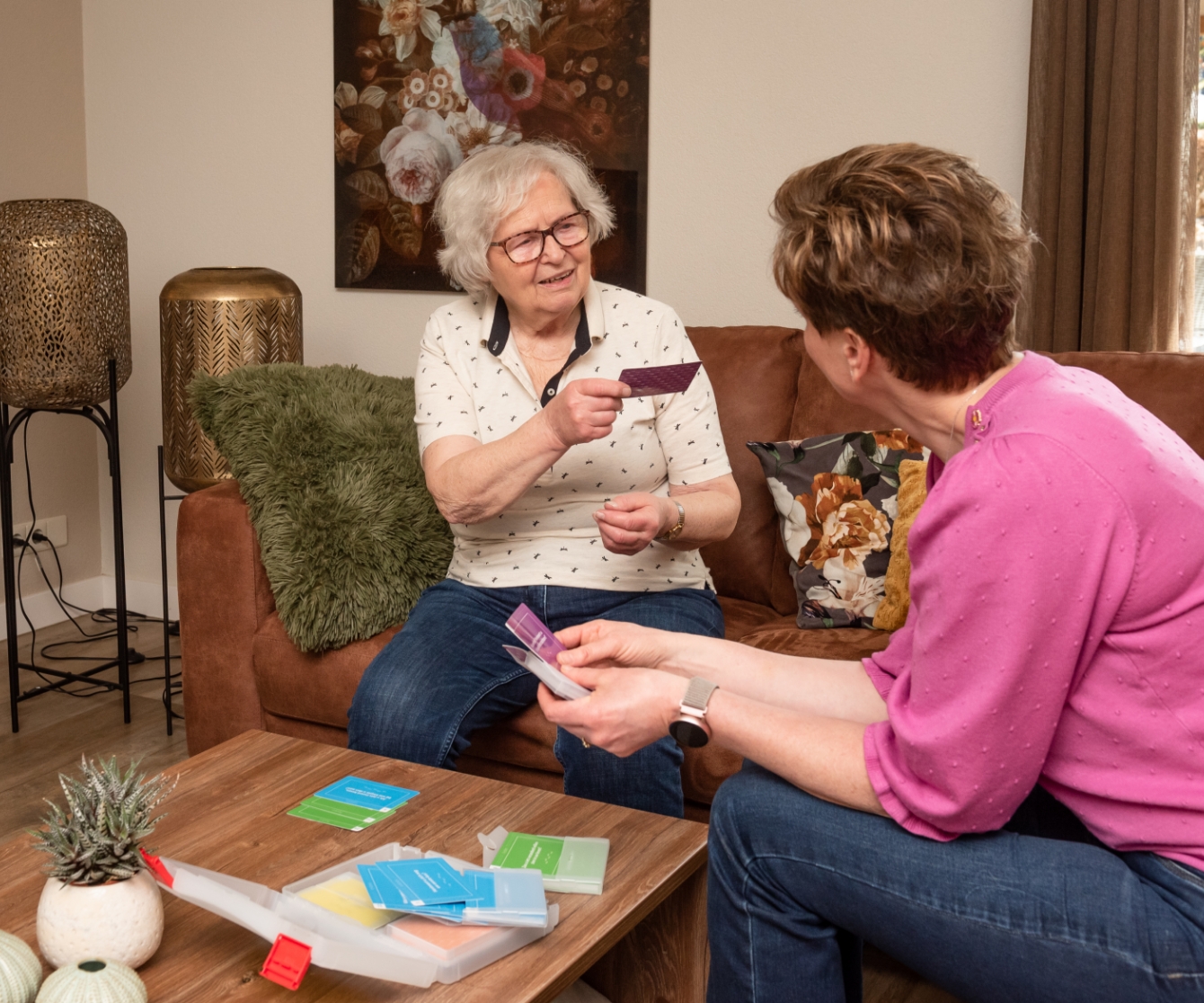 Thuis maken we kennis en voeren we een vrijblijvend eerste gesprek. We kijken naar de persoonlijke behoeften, wensen en mogelijkheden. Wat geeft kleur aan jouw dag en hoe kan ik jullie daarbij begeleiden?